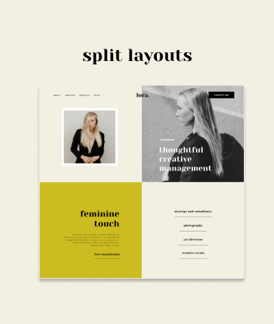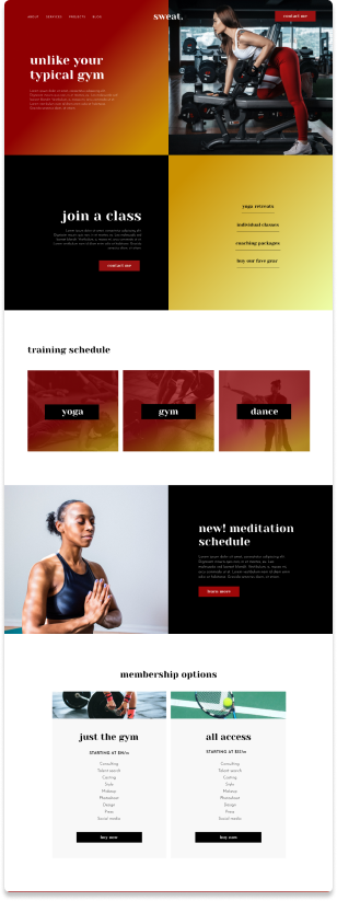 Use split layouts to show your offers and classes.
