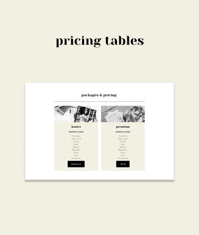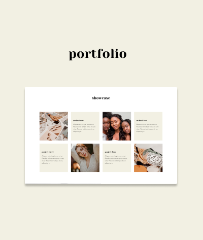 Seven unique page layouts built with Squarespace 7.1: two Home pages, About, Services, Portfolio, Contact, Freebie plus a fully customized Blog.